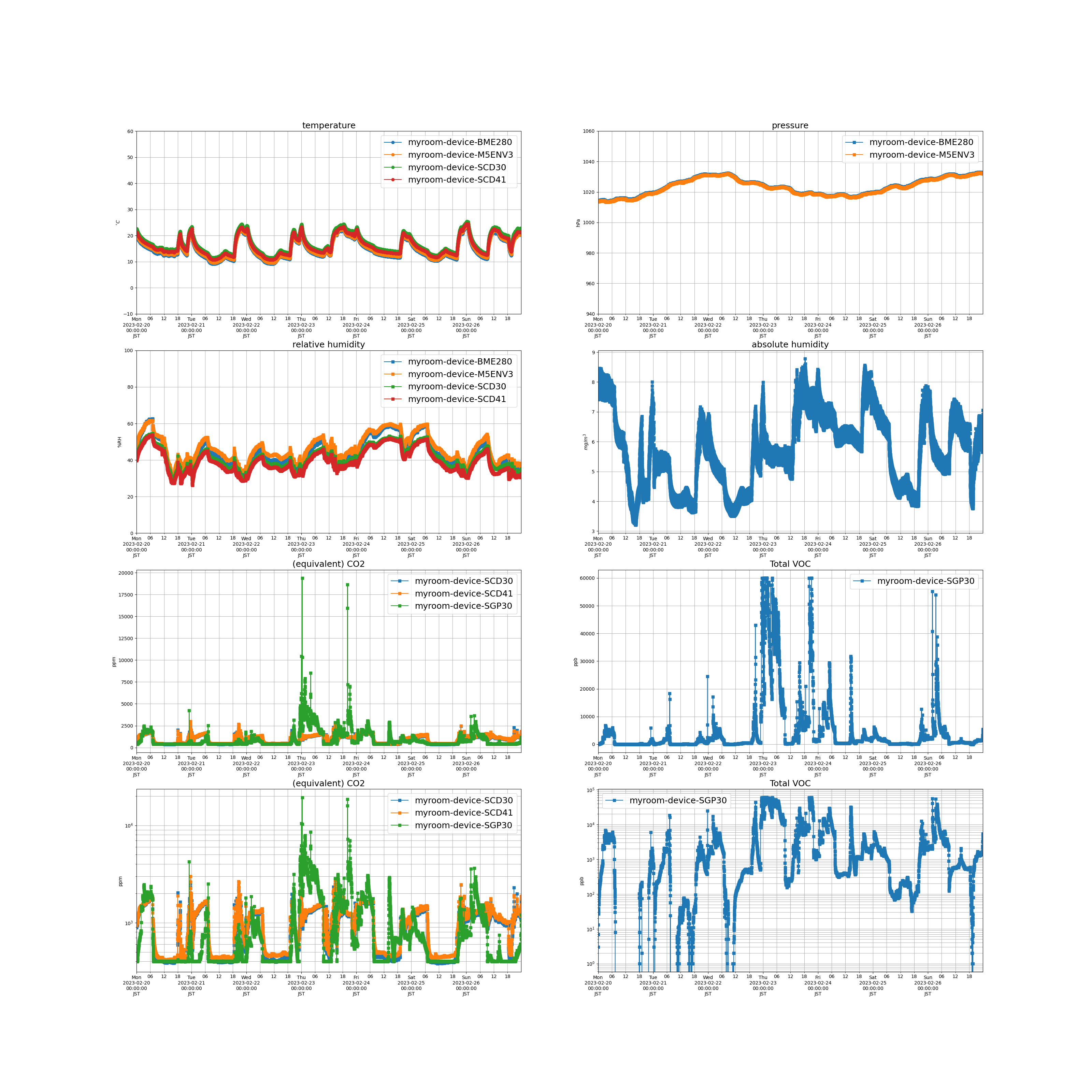 のときに書いたソフトウェアを BME280 / SGP30 / SCD30 / ENV.III unit / SCD41 に対応するようにほぼ全部書き換えた。
