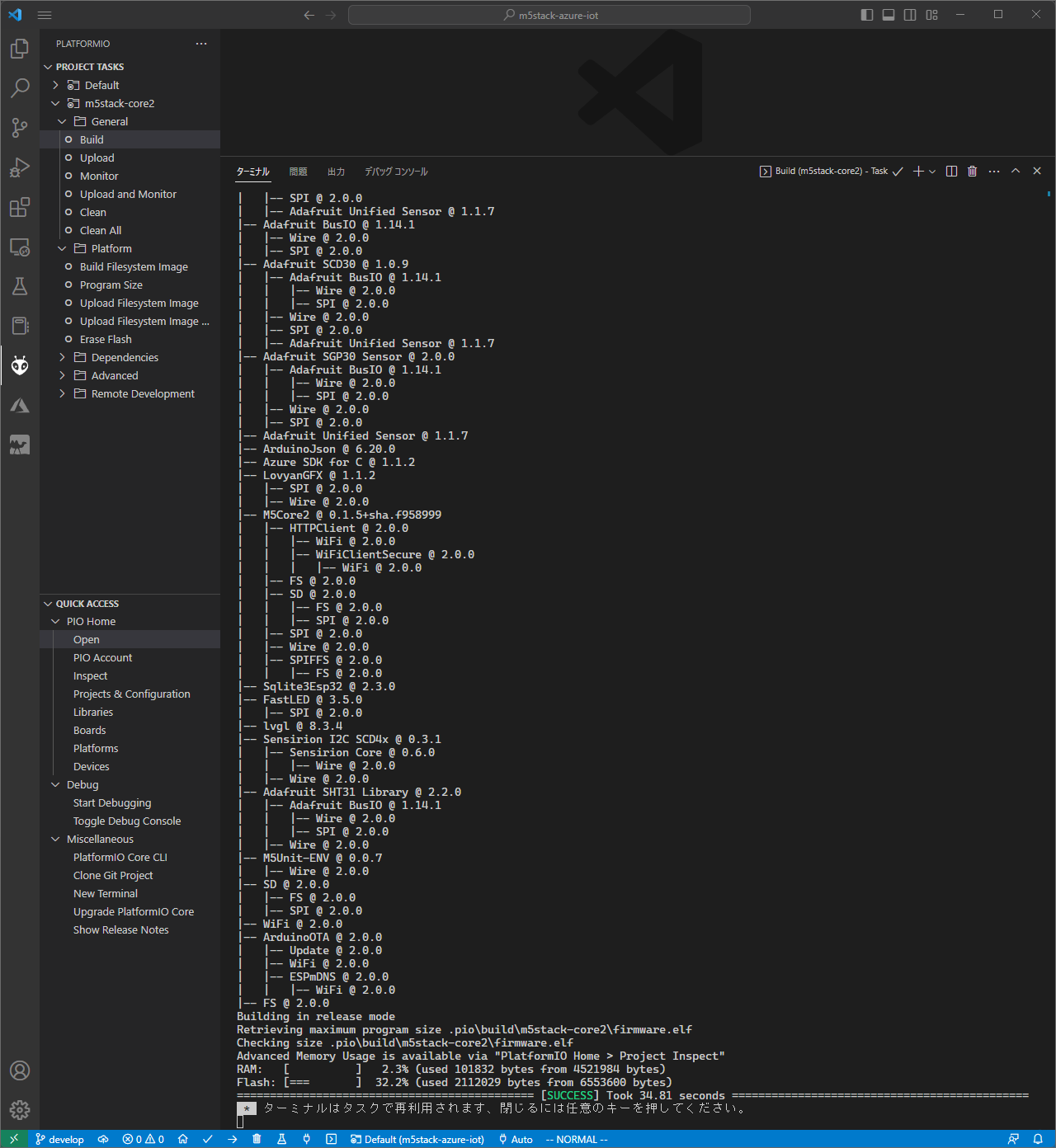 platformIO でビルドして M5Stack に書き込む