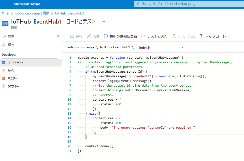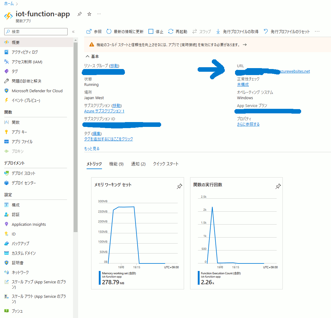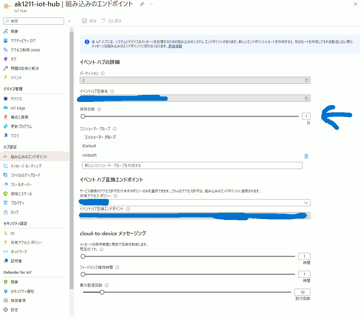のときに準備した Azure Iot Hub と