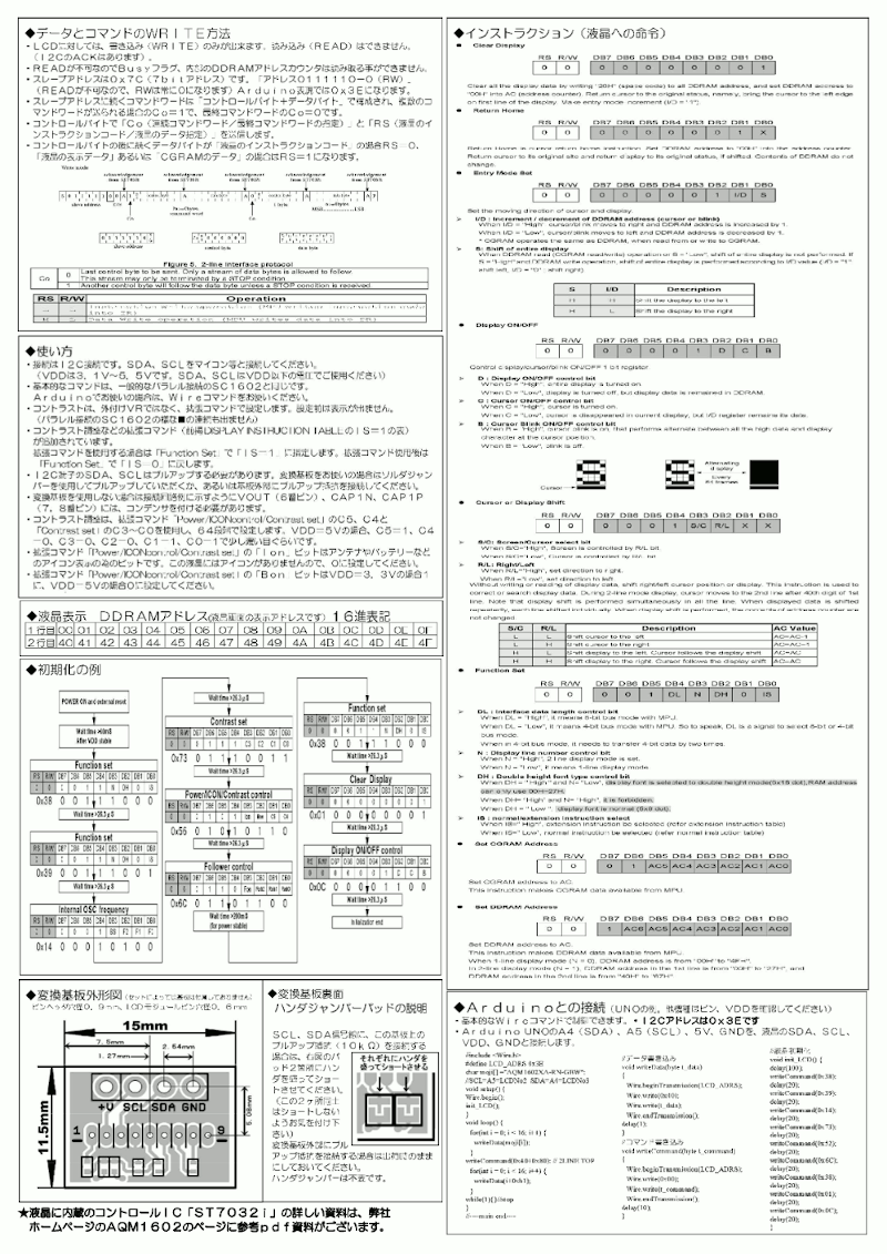 LCD モジュールは秋月電子の I2C接続小型キャラクタLCDモジュール(16 × 2行・3.3V/5V)ピッチ変換キット を使う。