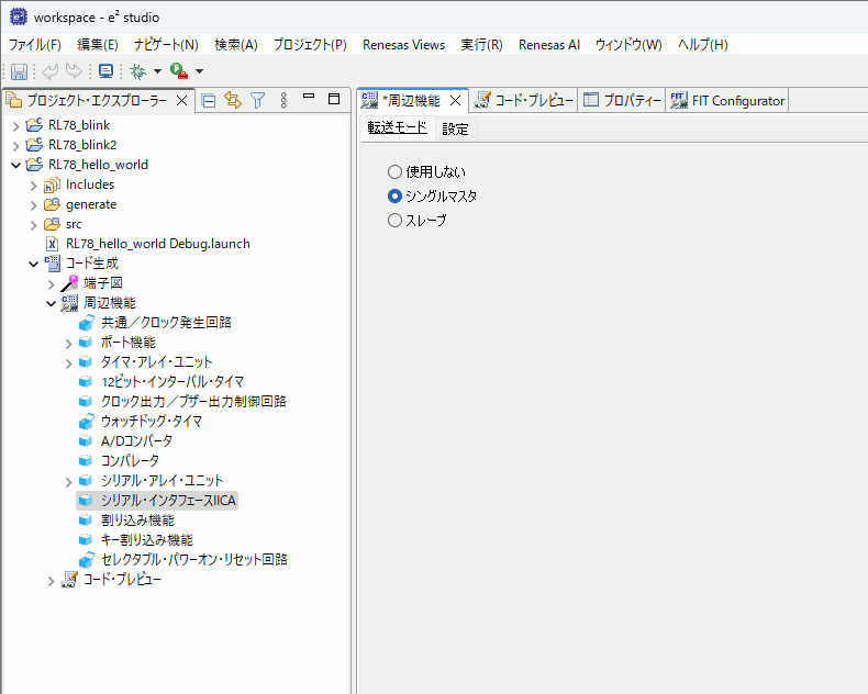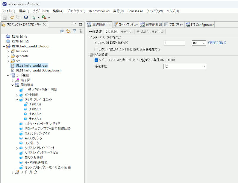 回路を作るのは後回しにして、e2 studio を起動して新規プロジェクトを作る。