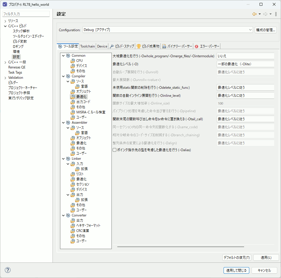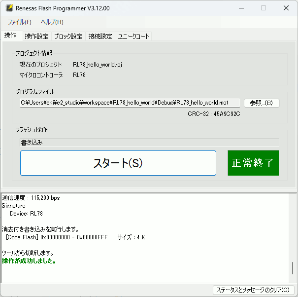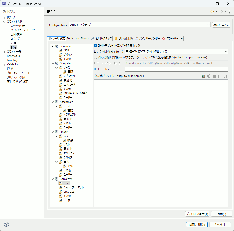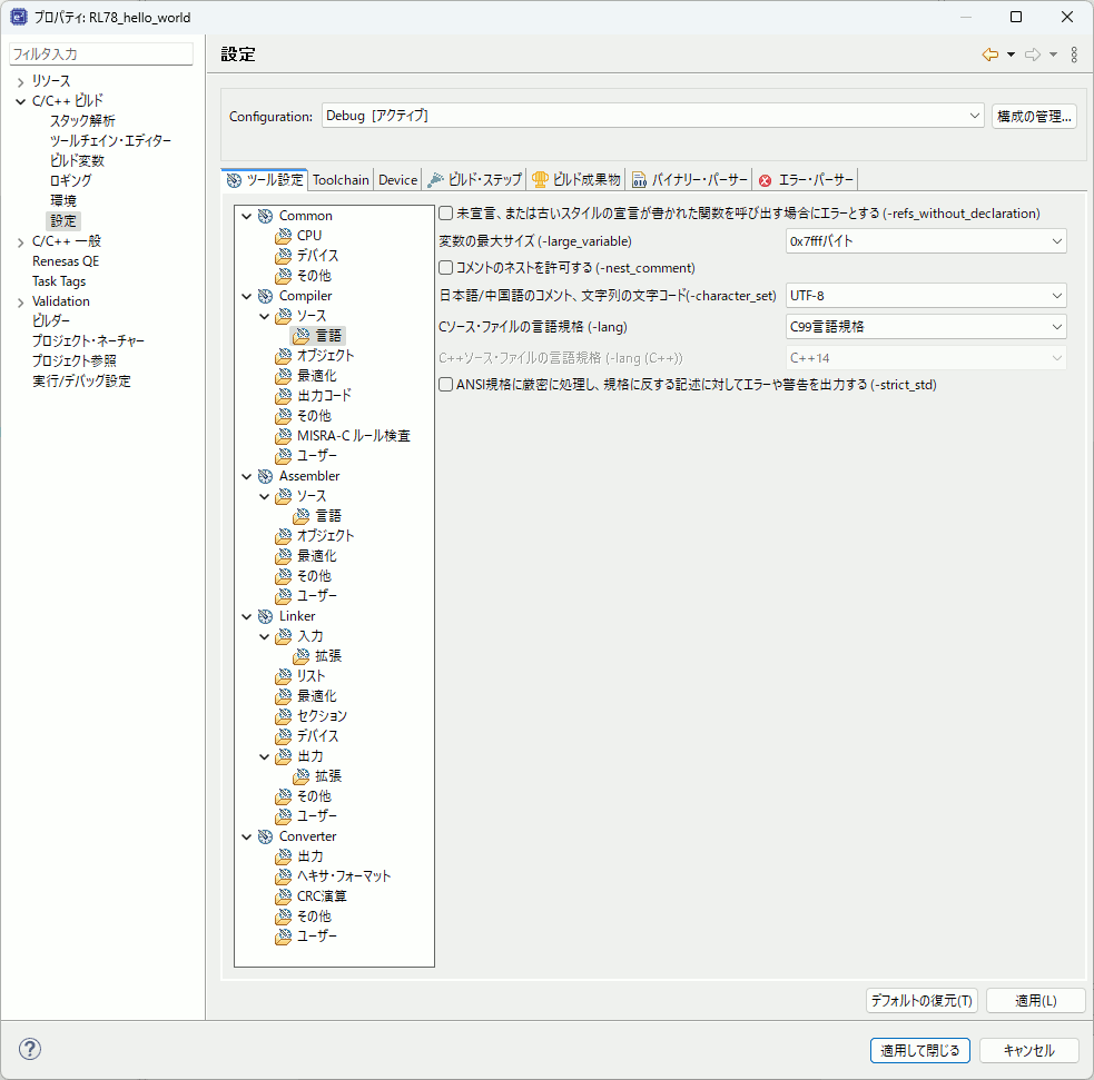 新規 -> Renesas C/C++ Project -> Renesas RL78 から