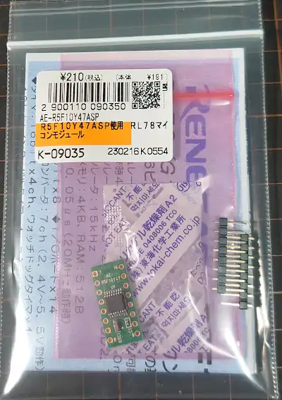 前回と同じくブレッドボードに挿すので210 円のR5F10Y47ASP使用 RL78マイコンモジュールの方を選ぶ。
