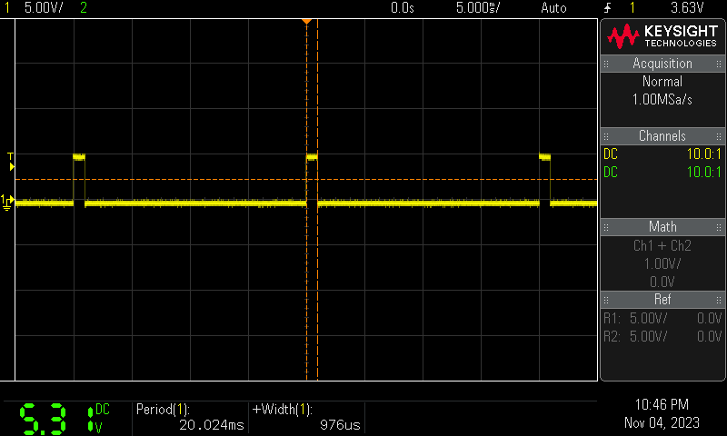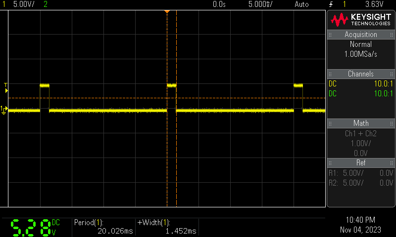 // center: 1.45ms (on duty) / 20ms(period) * 100 = 7.25%