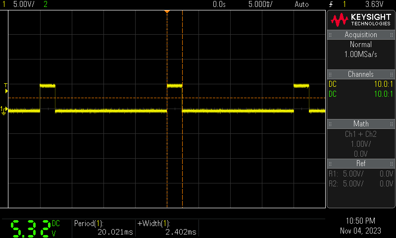 // 90 deg: 2.4ms (on duty) / 20ms(period) * 100 = 12.0%